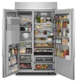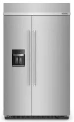 This premium 48” built-in refrigerator with exterior ice and water dispenser features a sleek stainless steel outside, and has innovative storage inside. Like the Under-Shelf Prep Zone with included bakeware, and the moisture- and stain-resistant Wood-Look Pull Out Tray that keeps ingredients beautifully organized. Plus, optimal temperatures for your ingredients are maintained with the ExtendFresh™ Plus Temperature Management System.