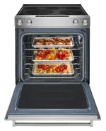 This beautiful electric range produces flawless cooking results with Even-Heat™ True Convection. The unique bow-tie design and convection fan ensure the inside of the entire oven is heated to, and stays at, the perfect temperature. This range also features a Steam Rack that adds additional moisture to the inside of the oven, enhancing cooking results. The oven is 6.3 cu ft., providing an extra-large cooking capacity that’s perfect for preparing multiple dishes at once.