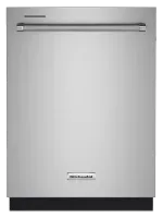 Experience the quietest cleaning from KitchenAid brand with this 39 dBA top control dishwasher. The third level utensil rack holds silverware, serving utensils and spatulas, and the adjustable middle rack makes room to fit tall items. Over 30 total wash jets provide targeted cleaning on every level, and the triple filtration system continuously cleans wash and rinse water, so dishes come out sparkling even with dirty cookware in the load.